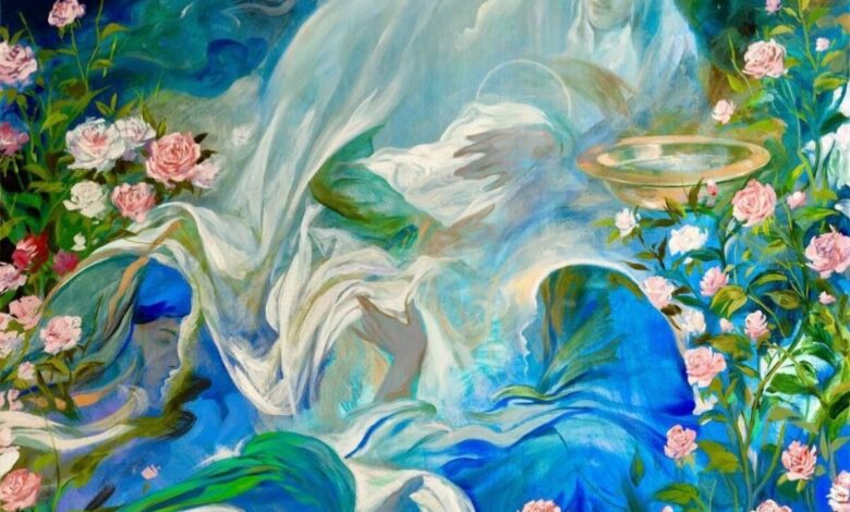 به گزارش خبرگزاری خبرآنلاین به نقل از آنا، روح‌الامین در توضیح این نقاشی نوشته است: «تابلو نقاشی «مادر غنچه‌ها» جشن تولد ناچیزی است با رنگ، از طرف بنده کمترین به پیشگاه ملک پاسبان حضرت خدیجه کبری سلام الله علیها مادر مکرمه حضرت خیر النساء فاطمه زهرا سلام الله علیها …