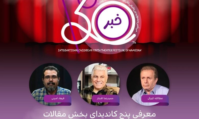 به گزارش خبرگزاری خبرآنلاین به نقل از ستاد خبری، در بخش مقالات سیاُمین جشنواره بینالمللی تئاتر کودک و نوجوان همدان، هیأت داوران این دوره متشکل از عطاالله کوپال، حمیدرضا افشار و فرهاد امینی پس از ارزیابی چکیده مقاله منتخب، پنج مقاله را به عنوان نامزدهای نهایی معرفی کردند. برگزیده این بخش در آیین اختتامیه جشنواره اعلام خواهد شد.